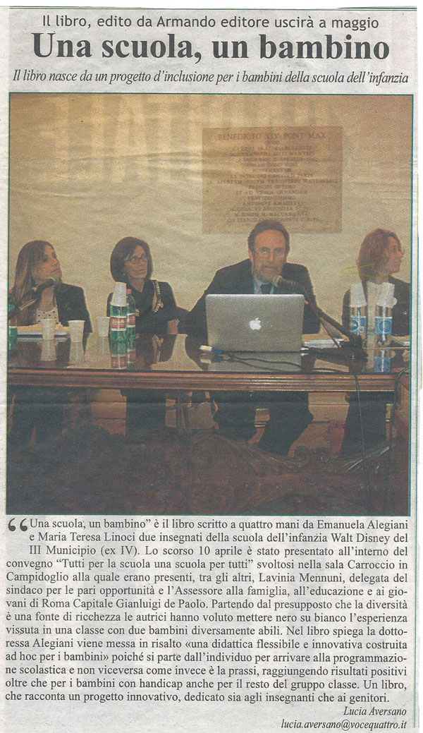 “Una scuola un bambino. Un progetto di inclusione per i bambini della scuola dell’infanzia” a cura di Emanuela Alegiani e Maria Teresa Lenoci, edito da Armando Editore ,2013